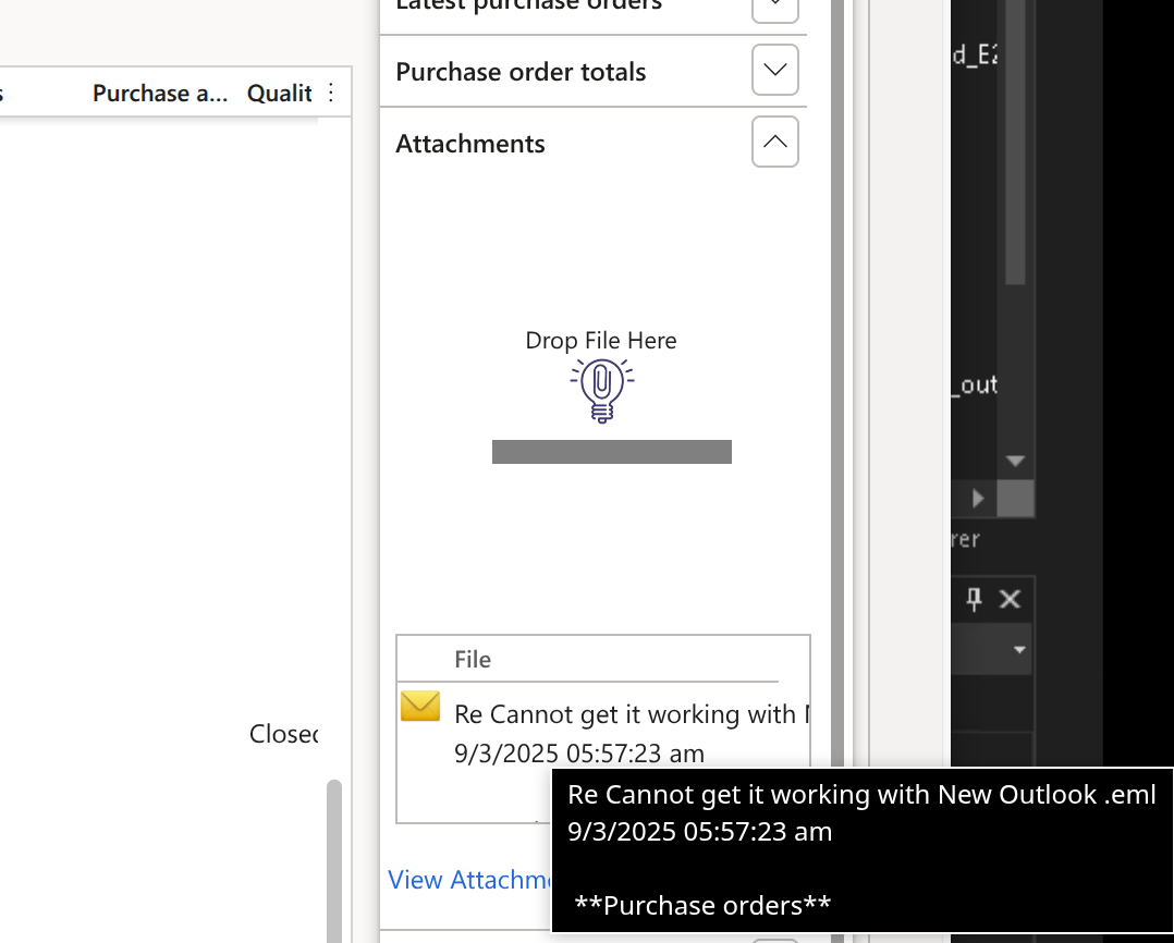 To help our customers in the meantime, we developed a small “New Outlook” extension that enables drag-and-drop when using the Extra version of E-ttach. This extension works by interacting with the Microsoft Graph API - however, because this involves configuration and authentication on your Microsoft 365 tenant, we can’t provide support for the setup or troubleshooting.